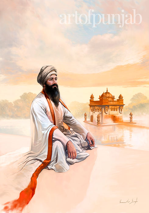 Guru Ram Das Sahib the fourth in the line of Guru Nanak, came from humble beginnings. He was born Bhai Jetha, and was an orphan who sold food on the street as a child to make ends meet. As a young man he met Guru Amar Das and began to live with the Guru. He quickly became famous in the Sikh Panth for his kind and loving attitude and his devotion to selfless service. Guru Amar Das Sahib’s daughter, Bibi Bhani, was married to Bhai Jetha. The two were sent by Guru Amar Das Sahib to start the new city of Amritsar. Later, the Guruship was passed to Bhai Jetha, who was given the name Guru Ram Das. Amritsar was open to all, where anyone, regardless of caste or background, could start a new life. The city was built around a Sarovar called Amritsar; a pool of water that Guru Ram Das had built. It was within this pool that the next Guru would build the heart of the Sikh Panth, Harmandir Sahib. -