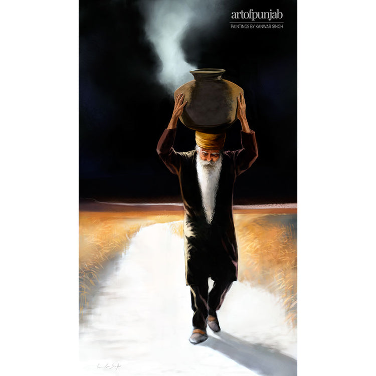 Guru Har Krishan the eighth in the line of Guru Nanak, became Guru at the age of five. Despite the tenderness of his age, Guru Sahib continued the message of Shabad Guru to free humanity from the cycle of reincarnation. He demonstrated that regardless of age, anyone can become one with Waheguru through Simran. This painting of Guru Har Krishan Sahib is a meditation upon the words in our daily Ardas which ask us to reflect upon him. “Think of Guru Har Krishan, that sight dispels all sorrow.” -
