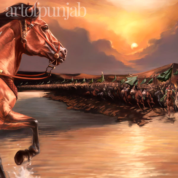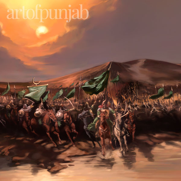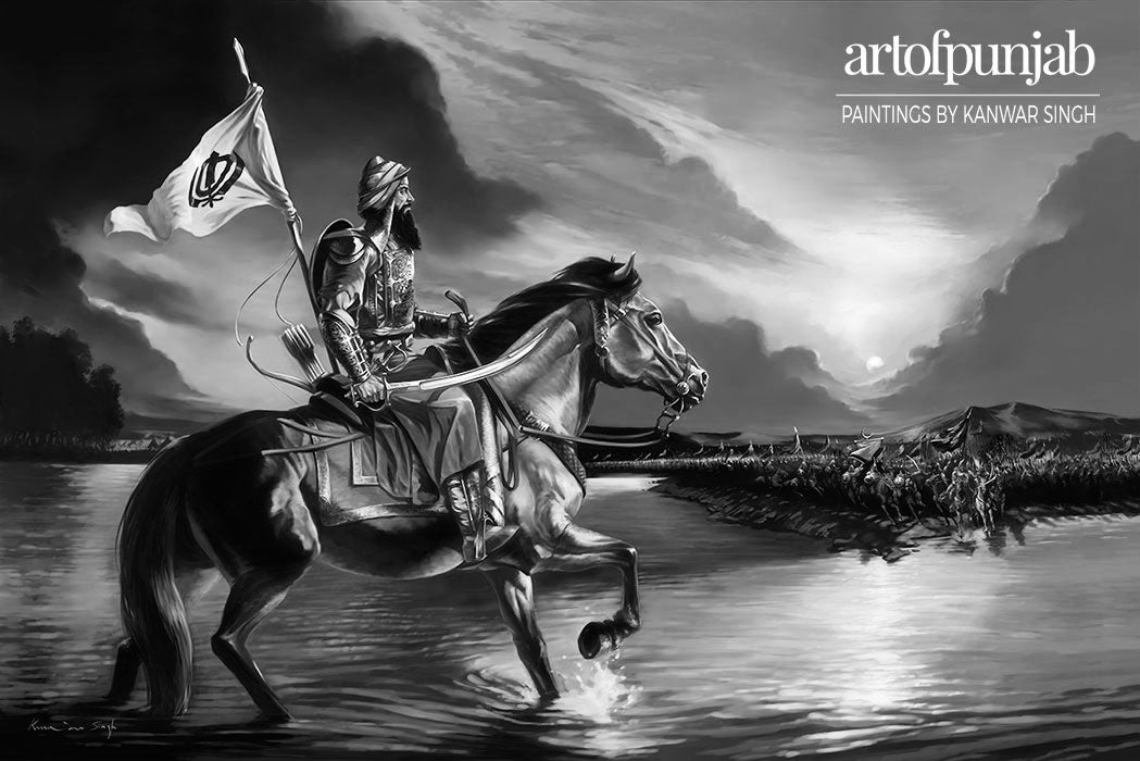 This painting by Kanwar Singh marks Banda Singh Bahadur’s final stand against a massive Mughal army at Gurdas Nangal. His will against the oppressor never faltered and even after torture and the slaying of his young son, he refused to convert to Islam. Banda Singh Bahadur was executed along with more than a thousand loyal Sikhs in Delhi.